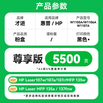 才进适用惠普135a硒鼓135w打印机墨盒107a/w/r 105a/106a Laser MFP 137fnw碳粉墨粉W1105A W1107A W1106A