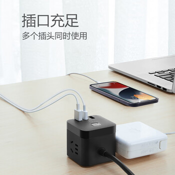公牛(BULL)30WPD苹果快充魔方插座/USB插线板/插排/桌面充电站宿舍家用接线板 3位全长1.5米 GNV-UU2303H总控