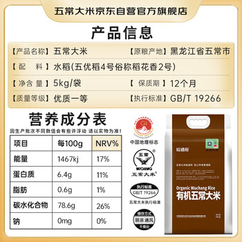 五常大米官方溯源 裕道府 优质五常大米10斤 原粮稻花香2号 有机认证 新米