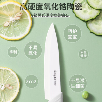 拜格(bayco)陶瓷刀水果刀4英寸家用削皮刀便携辅食免磨小刀带刀套BD39196
