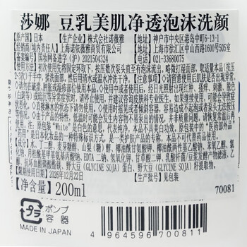 莎娜(SANA)豆乳美肌净透泡沫氨基酸洗面维c按压泡泡洁面乳200ml