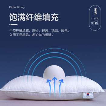 富安娜枕头芯高枕酒店枕头全棉面料抗菌枕头芯纤维软枕芯一对装74*48cm