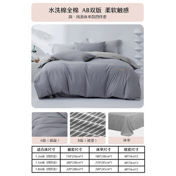 水星家纺四件套床上用品纯棉100%全棉水洗棉亲肤透气被套枕套床单1.8m床