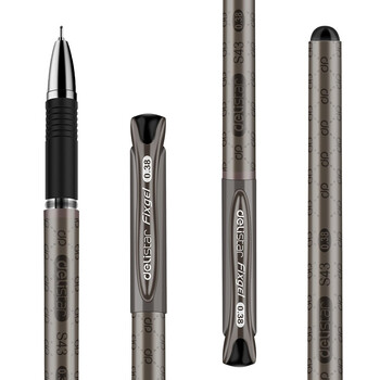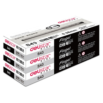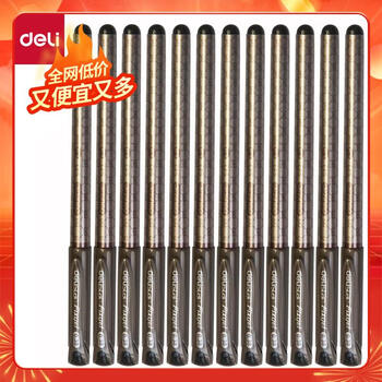 得力(deli)0.38mm黑色全针管财务中性笔 优雅十字纹细杆12支/盒