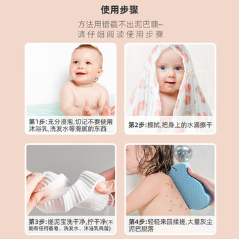 洁比世婴儿洗澡搓澡巾海绵儿童搓澡神器宝宝搓泥海绵洗澡巾蓝+粉两个装