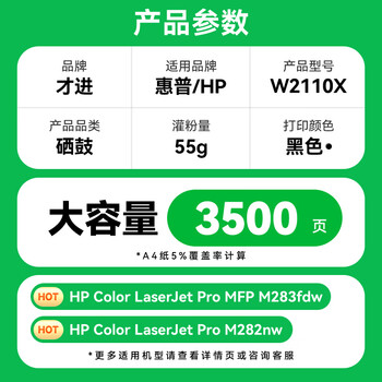 才进适用惠普M283fdw硒鼓黑色M255dw M282nw M283fdn粉盒M283cdw打印机碳粉盒hp206X W2110X复印机墨盒大容量