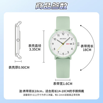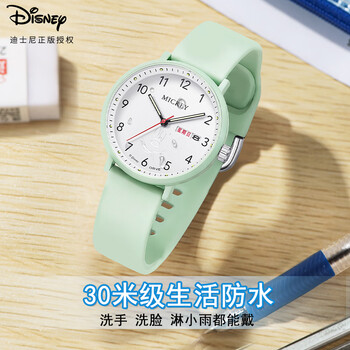 迪士尼(Disney)学生手表简约防水石英表双日历初中生高中生考试手表MK-11809GN