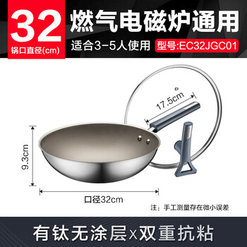 苏泊尔 SUPOR 不锈钢有钛无涂层不粘炒锅30cm炒菜锅EC30JGC01