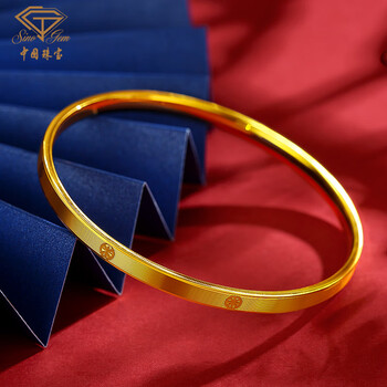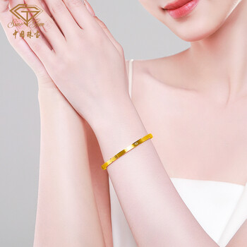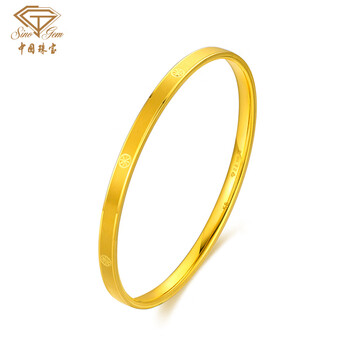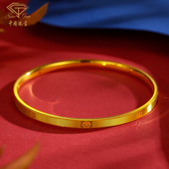 中国珠宝生日礼物送女友黄金手镯女款足金5D几何车花手镯手镯节日