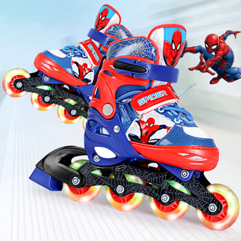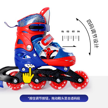 迪士尼轮滑鞋儿童溜冰鞋男女童滑冰鞋初学可调直排蜘蛛侠旱冰鞋送礼物