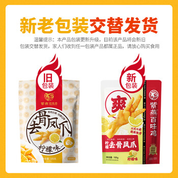 紫燕百味鸡拆骨凤爪鸡爪子柠檬卤味熟食无骨露营踏青零食即开袋独立105g