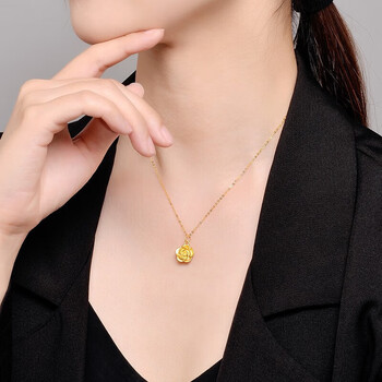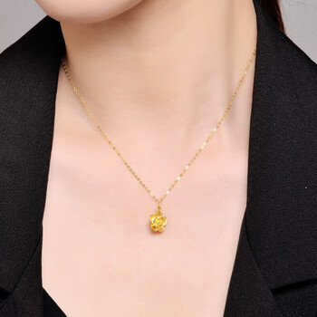 蒂蔻(Tico)足金玫瑰花黄金吊坠女5D硬金花朵项链送女朋友老婆生日礼物