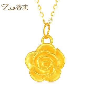 蒂蔻(Tico)足金玫瑰花黄金吊坠女5D硬金花朵项链送女朋友老婆生日礼物