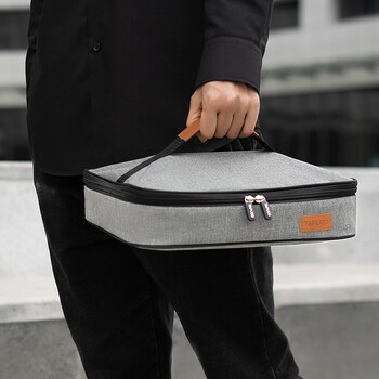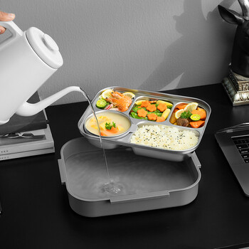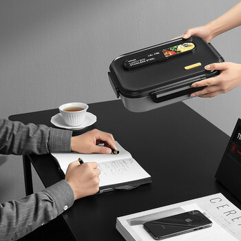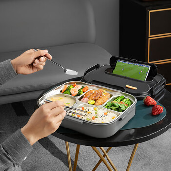 泰福高(TAFUCO)饭盒304不锈钢五格餐盘防烫学生便当盒配餐具保温袋2.4LT5218棕色