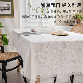 艾薇桌布白色蕾丝餐桌布棉长方形茶几布书桌沙发巾盖布130*180米白T格