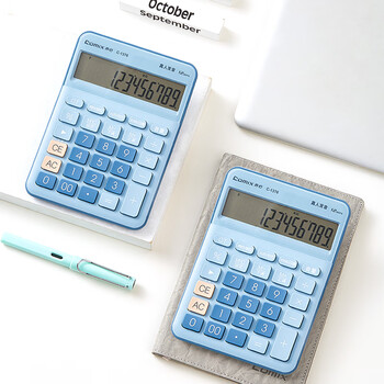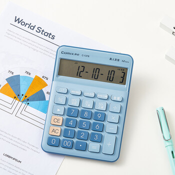 齐心(Comix)语音计算器 12位大屏桌面计算机 办公/学习用品 高颜值简约时尚 蓝C-1376