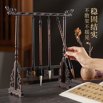 六品书院毛笔笔架 12针挂简约鸡翅木实木挂毛笔书法挂架 复古文房四宝创意摆件热门商品【款式随机发】