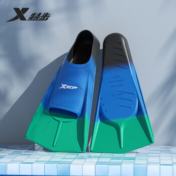 特步游泳脚蹼专业训练成人脚蹼儿童潜水自由泳蛙泳速学装备 蓝绿三色