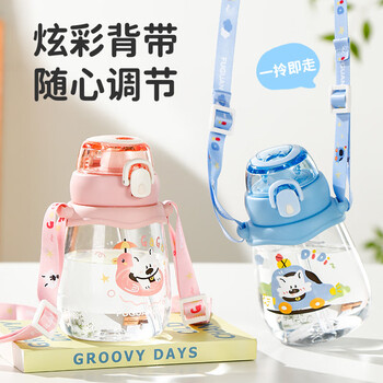 FGA富光儿童夏季水杯弹盖吸管杯子Tritan防摔小学生便携提手背带水杯