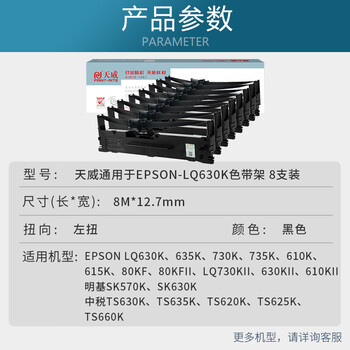 天威LQ630K/LQ730K 8支装 适用爱普生EPSON LQ630K LQ635K LQ730K LQ735K LQ80KF打印机色带架