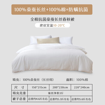 太湖雪 100%桑蚕丝冬被 蚕丝重3斤 全棉抗菌面料200*230cm白