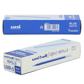 uni三菱 uni-ball UMR-5笔芯0.5mm中性笔蓝色替芯 适用签字笔UM-100系列 12支