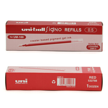uni三菱 uni-ball UMR-5笔芯0.5mm中性笔红色替芯 适用签字笔UM-100系列 12支