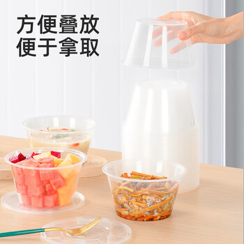 特美居(temeiju)一次性饭盒圆形透明塑料快餐盒加厚带盖打包盒餐具300套装1000型