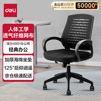 得力(deli)简约舒适办公椅 特色椅背 人体工学电脑椅 职员网布椅子 4901