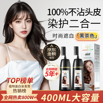 靓逸(LIANGYI)易梳彩黑茶色400ml染发剂植物配方纯染发膏盖白头发不沾皮男女士