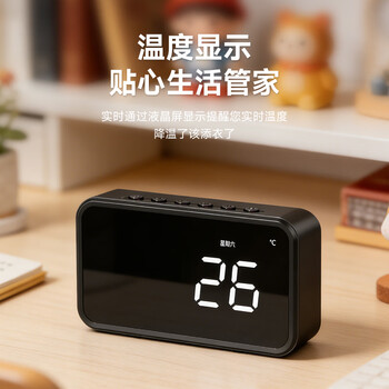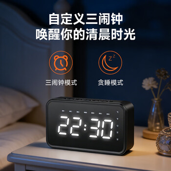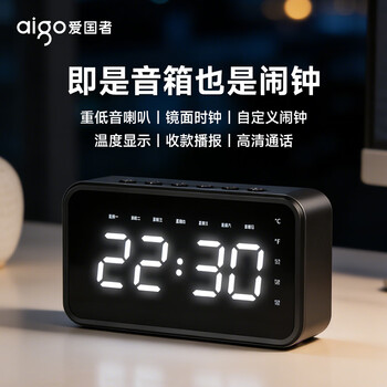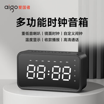 爱国者T28蓝牙音响 智能时钟桌面电脑音响 便携低音炮插卡无线音箱收款播报 钻石黑