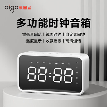 爱国者T28Pro蓝牙音响 智能时钟桌面电脑音响 便携低音炮插卡无线音箱收款播报 磨砂白