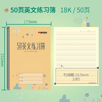 产品名称:凯萨50张线圈英文练习簿/英语练习本 产品型号:30240 产品尺寸:255 x 173 x 20mm 产品格式:50张 产品包装:2本装+赠品1本 产 地:青岛