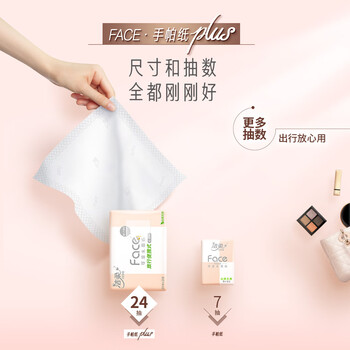 抽纸 粉Face3层24抽*10包 小方巾面巾纸 100%原生木浆手帕纸plus