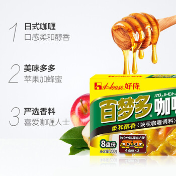 好侍(HOUSE)百梦多咖喱块 微辣 200g/盒 日式块状咖喱调味料 4-8人份