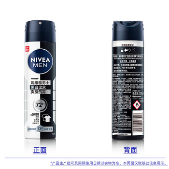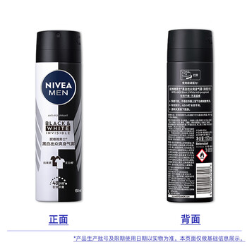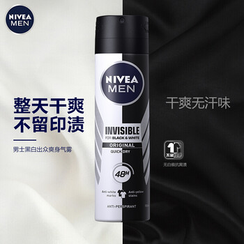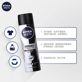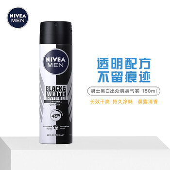 妮维雅(NIVEA)男士止汗抑汗喷雾 黑白出众爽身香体气雾 150ml
