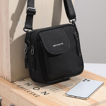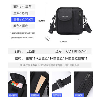 七匹狼单肩包男士休闲斜挎包潮流帆布包高级黑旅行小挎包手机背包