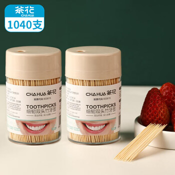 茶花双头竹牙签 独立盒装拧盖 一次性便携竹签 水果签1040支2罐装