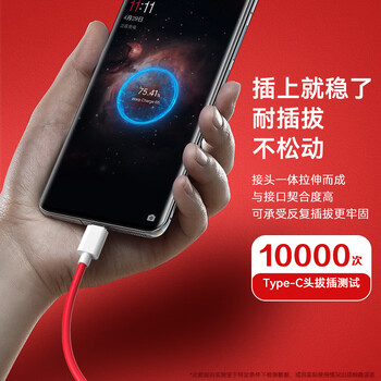 轩邑一加数据线80W/65W Warp超级闪充快充充电线1+9Pro/9/9rt/10/8t/7/6/oppo双头Type-C转Type-C 1.5m