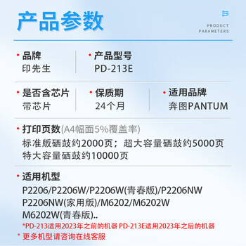 印先生PD-213E硒鼓 适用奔图P2206W P2210W M6202W M6206W系列打印机青春版2023年版新机器