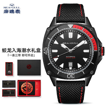 海鸥(SEAGULL)手表男士自动机械表 男士手表 生日礼物 蛟龙潜水表礼盒6058H黑红