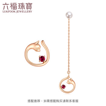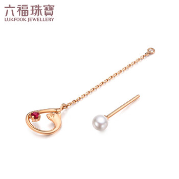 六福珠宝 18K金红宝石淡水珍珠耳钉(单只) 宝石4分/红18K/约0.61克