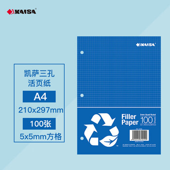 凯萨(KAISA)A4/100张三孔方格活页纸 3孔活页本替芯网格本活页笔记本记事本内页纸开学文具 1包