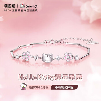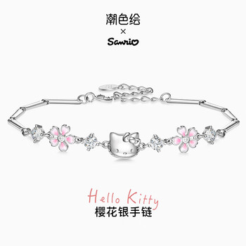 潮色绘三丽鸥HelloKitty纯银手链女生款生日礼物轻奢高级感手链女友6029