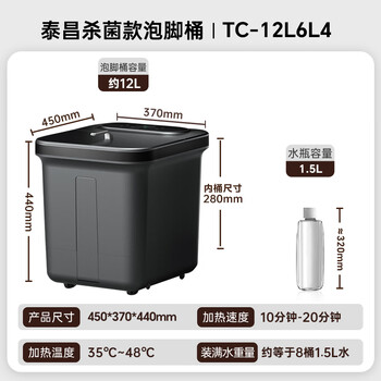 泰昌(Taicn)足浴盆加热智能杀菌按摩泡脚桶洗脚盆可拆卸足浴桶送父母长辈节日生日礼物TC-12L6L4(烟雨灰)
