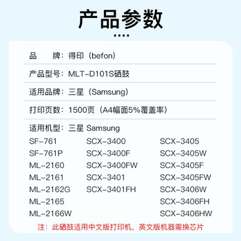 得印D101S硒鼓中文版适用三星ML-2161硒鼓2160/2162G/2165/2166W墨盒SCX3401硒鼓SCX3405/W/F/FW粉盒SF761/P墨盒
