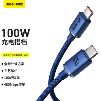 倍思 晶耀系列 快充数据线Type-C to Type-C 100W 2m 蓝色*1