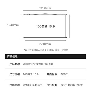 迦观 壁挂+支架两用 玻纤投影幕 增益1.2 100英寸16:9投影仪幕布 8K高清投影幕 平整不卷边