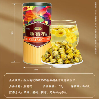 贡苑 菊花茶胎菊102g 特优级胎菊茶搭玫瑰枸杞金银花泡水喝的养生花茶