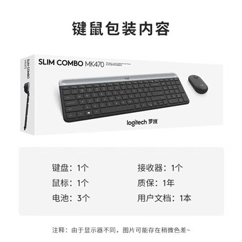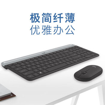 罗技MK470 办公差旅超薄便携紧凑无线键鼠套装 全尺寸鼠标电脑静音薄膜键盘 带无线2.4G接收器 黑色